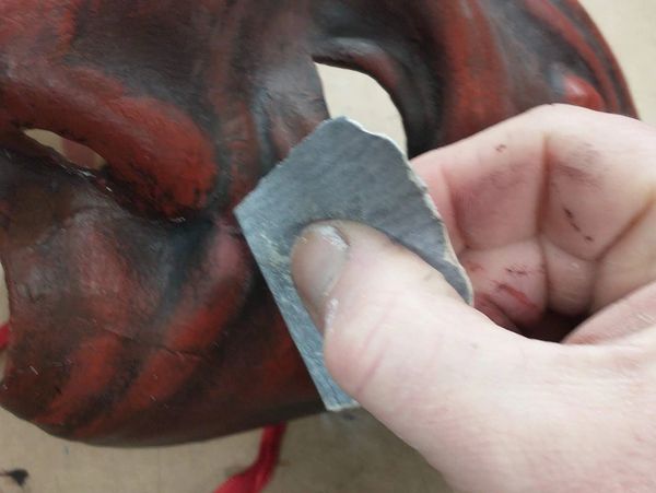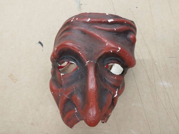 This vintage Venetian mask had seen better days and needed a smile put back on his face.